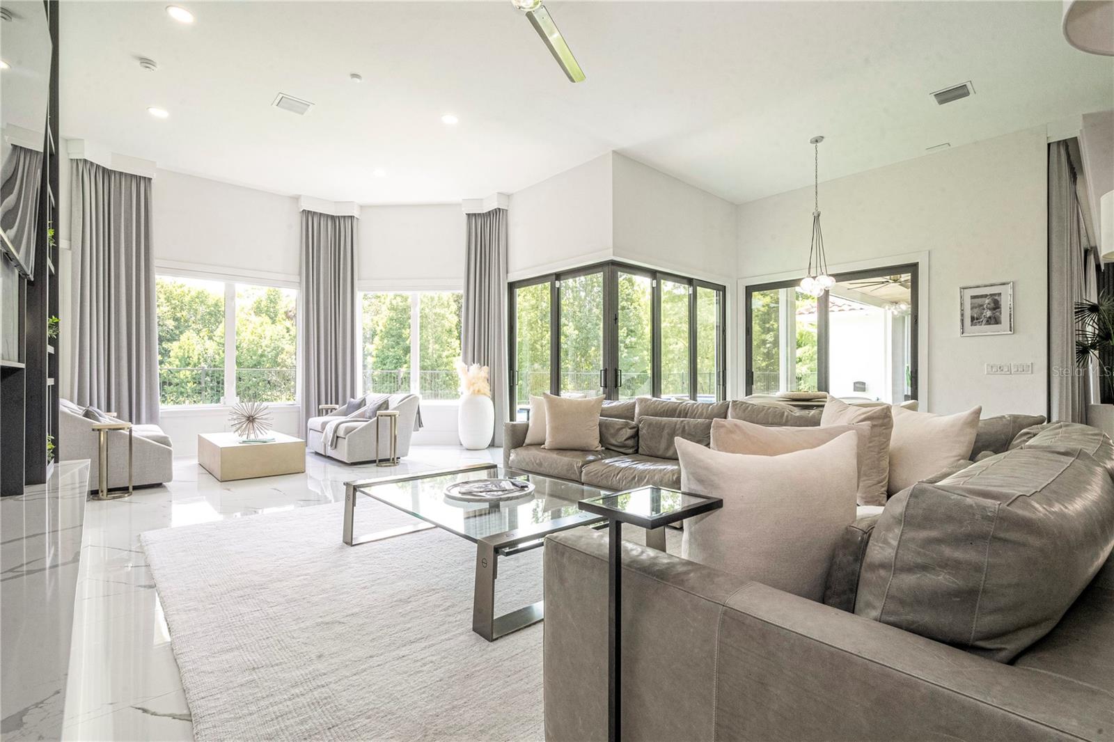 Discover Florida's luxury lifestyle in this breathtaking 8,000+ sq. ft. lakefront masterpiece on Celebration's most coveted street. Offering stunning water and conservation views, this fully renovated contemporary estate is thoughtfully designed with dramatic high ceilings, a grand spiral staircase, and exquisite flooring througout.